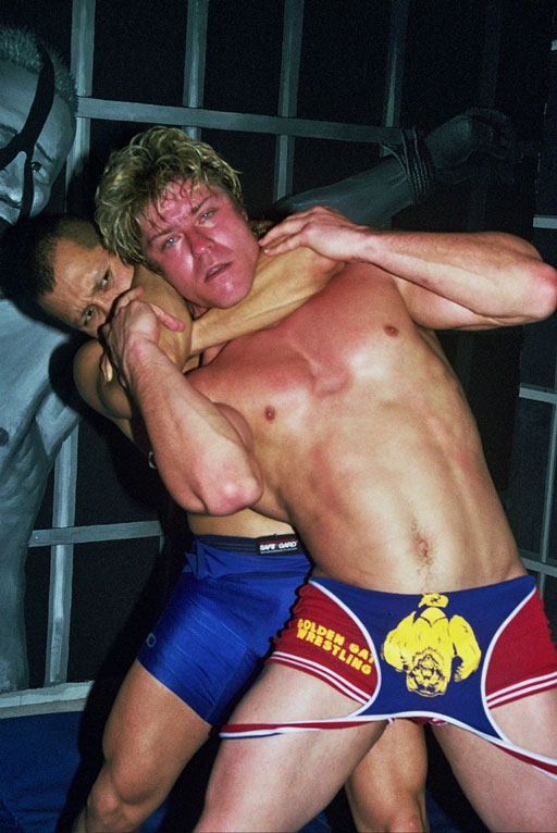 Each of these experienced wrestlers is determined to dominate the other. Cody Foster loses and John Bondi takes advantage. Foster is bound, paddled, humiliated, then forced to cum. Next Bondi suspends his slave, paddles him, then applies weighty clamps all over him. Finally tied, Foster succumbs to the suction devices on his tits for an explosive ending.